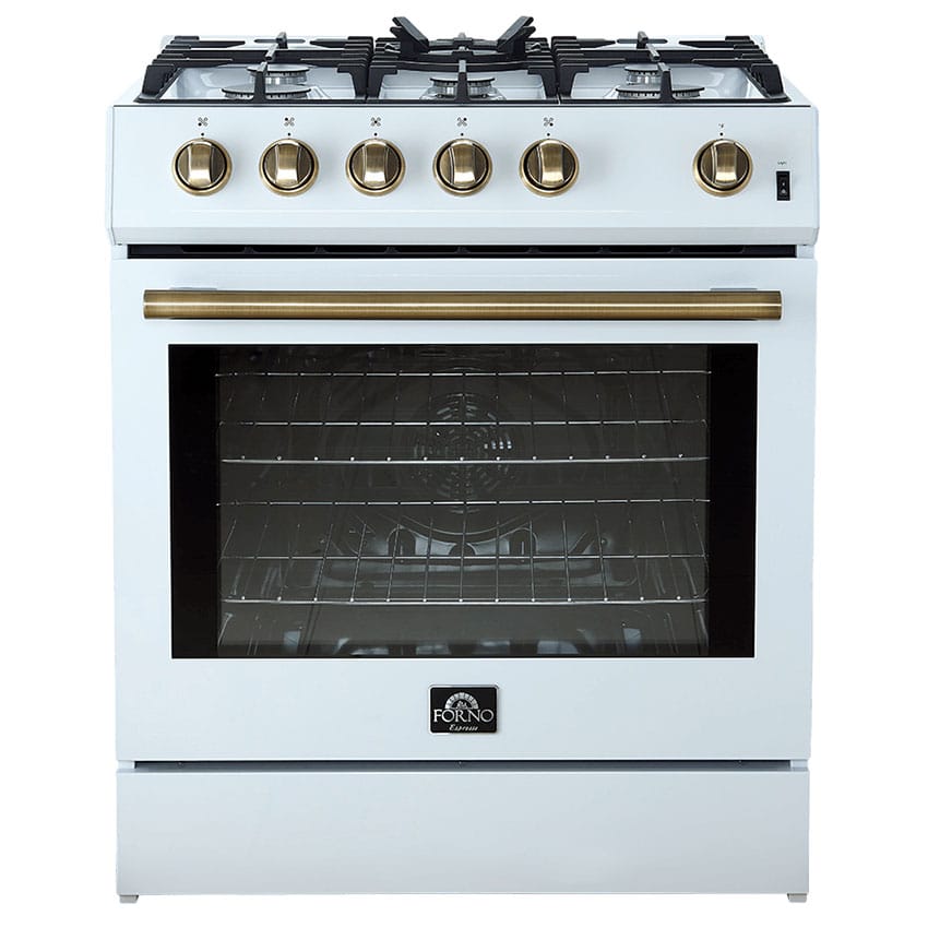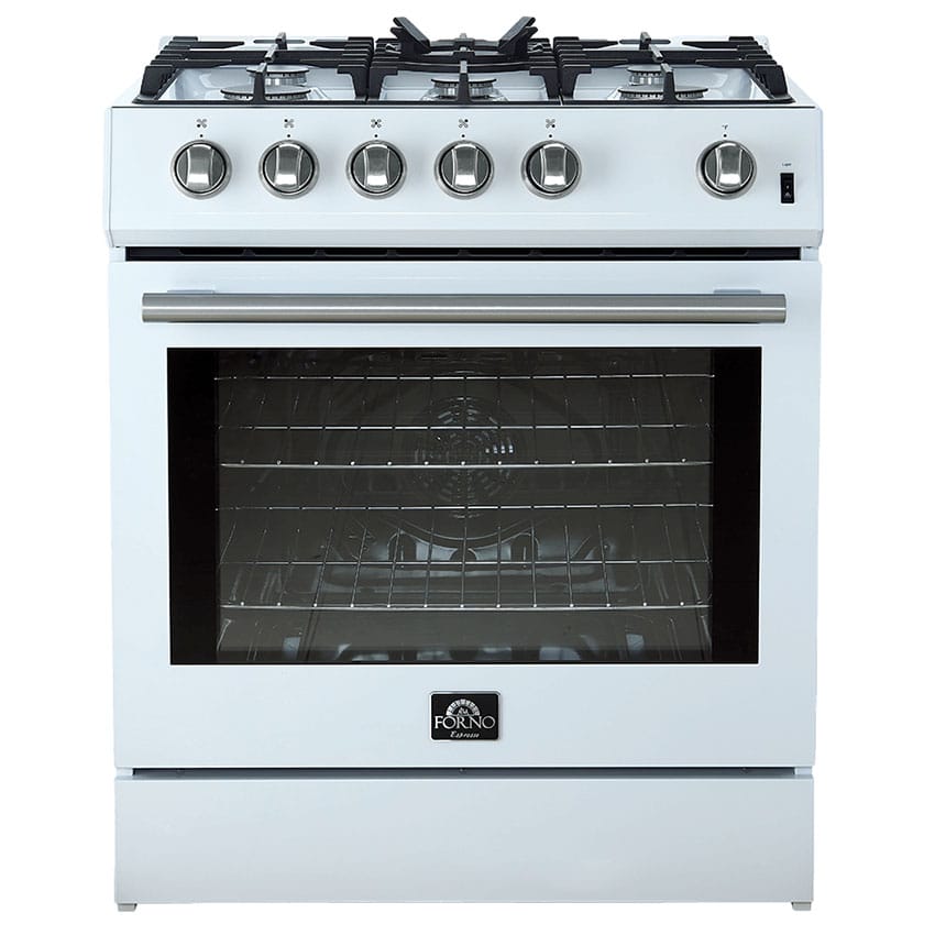 Forno Leonardo Espresso 30″ White Gas Range, 5 Burners, 39 500 BTU, 5 cu.ft. Convection Oven – FFSGS1116-30WHT