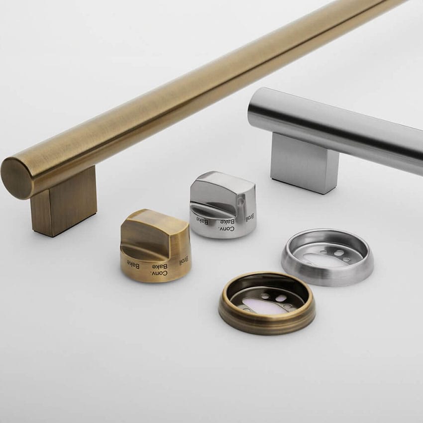 - Customize with antique brass & stainless-steel handles & knobs for a unique touch in your unit and kitchen.