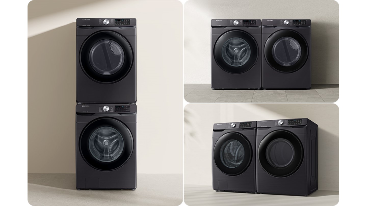Install your washer and dryer stacked or side by side to fit any space.